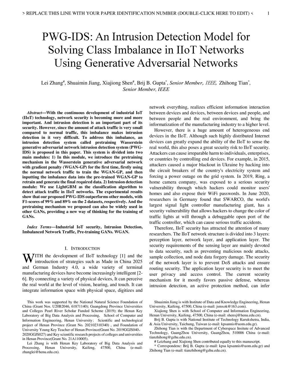 PWG-IDS: An Intrusion Detection Model for Solving Class Imbalance in