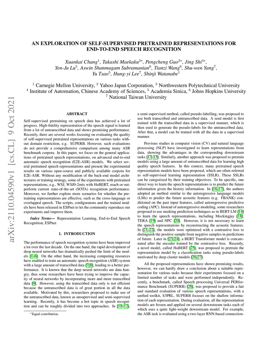 Self-supervised pretraining on speech data has achieved a lot of progress. High-fidelity representation of the speech signal is learned from a lot of untranscribed data and shows promising performance. Recently, there are several works focusing on evaluating the quality of self-supervised pretrained representations on various tasks without domain restriction, e.g. SUPERB. However, such evaluations do not provide a comprehensive comparison among many ASR benchmark corpora. In this paper, we focus on the general applications of pretrained speech representations, on advanced end-to-end automatic speech recognition (E2E-ASR) models. We select several pretrained speech representations and present the experimental results on various open-source and publicly available corpora for E2E-ASR. Without any modification of the back-end model architectures or training strategy, some of the experiments with pretrained representations, e.g., WSJ, WSJ0-2mix with HuBERT, reach or outperform current state-of-the-art (SOTA) recognition performance. Moreover, we further explore more scenarios for whether the pretraining representations are effective, such as the cross-language or overlapped speech. The scripts, configuratons and the trained models have been released in ESPnet to let the community reproduce our experiments and improve them.