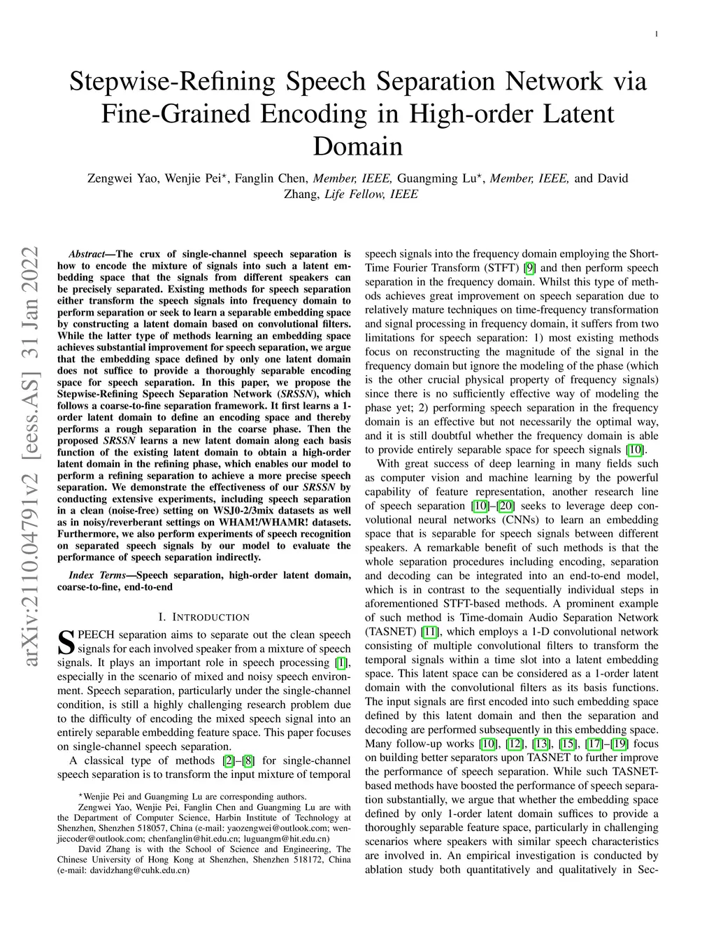 The crux of single-channel speech separation is how to encode the mixture of signals into such a latent embedding space that the signals from different speakers can be precisely separated. Existing methods for speech separation either transform the speech signals into frequency domain to perform separation or seek to learn a separable embedding space by constructing a latent domain based on convolutional filters. While the latter type of methods learning an embedding space achieves substantial improvement for speech separation, we argue that the embedding space defined by only one latent domain does not suffice to provide a thoroughly separable encoding space for speech separation. In this paper, we propose the Stepwise-Refining Speech Separation Network (SRSSN), which follows a coarse-to-fine separation framework. It first learns a 1-order latent domain to define an encoding space and thereby performs a rough separation in the coarse phase. Then the proposed SRSSN learns a new latent domain along each basis function of the existing latent domain to obtain a high-order latent domain in the refining phase, which enables our model to perform a refining separation to achieve a more precise speech separation. We demonstrate the effectiveness of our SRSSN by conducting extensive experiments, including speech separation in a clean (noise-free) setting on WSJ0-2/3mix datasets as well as in noisy/reverberant settings on WHAM!/WHAMR! datasets. Furthermore, we also perform experiments of speech recognition on separated speech signals by our model to evaluate the performance of speech separation indirectly.