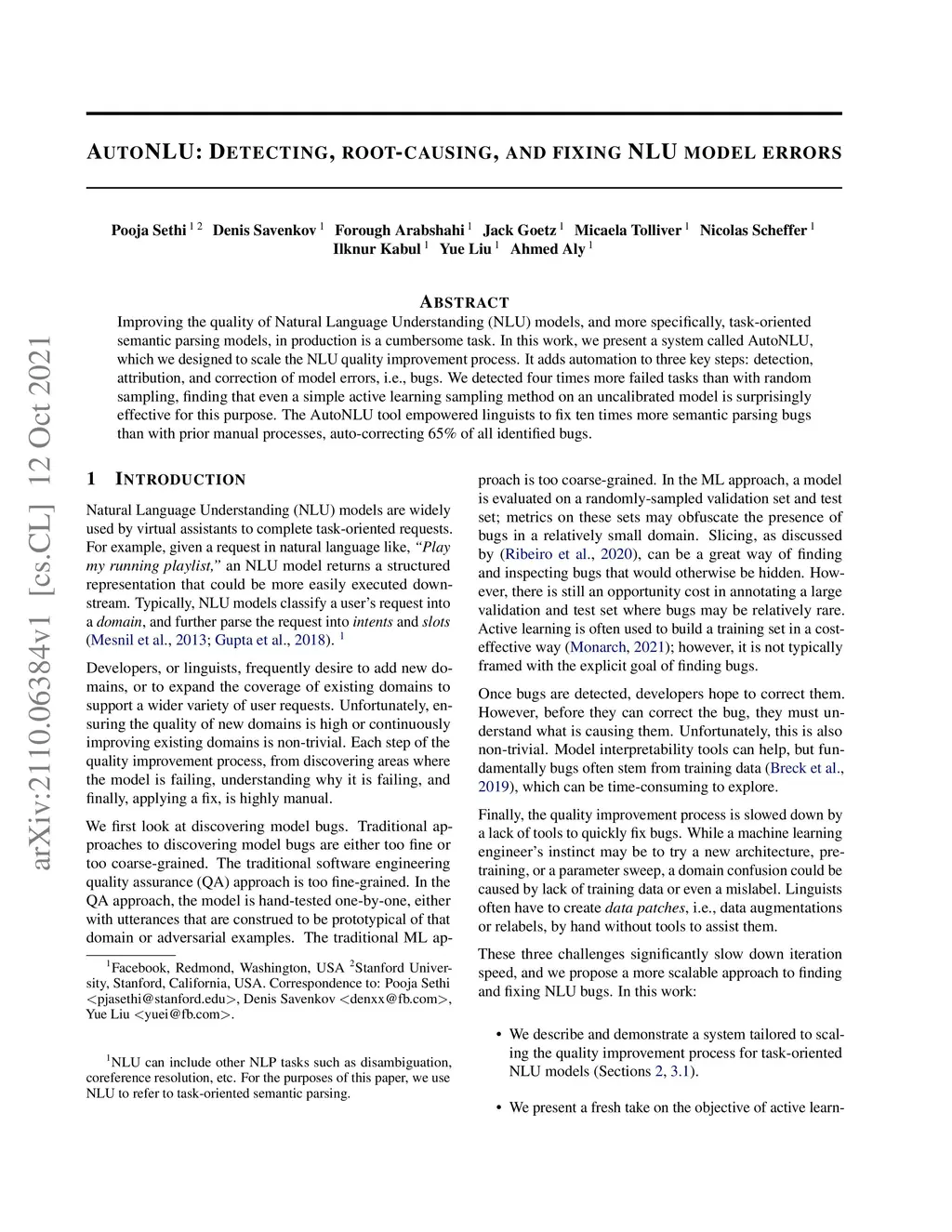 AutoNLU: Detecting, root-causing, and fixing NLU model errors