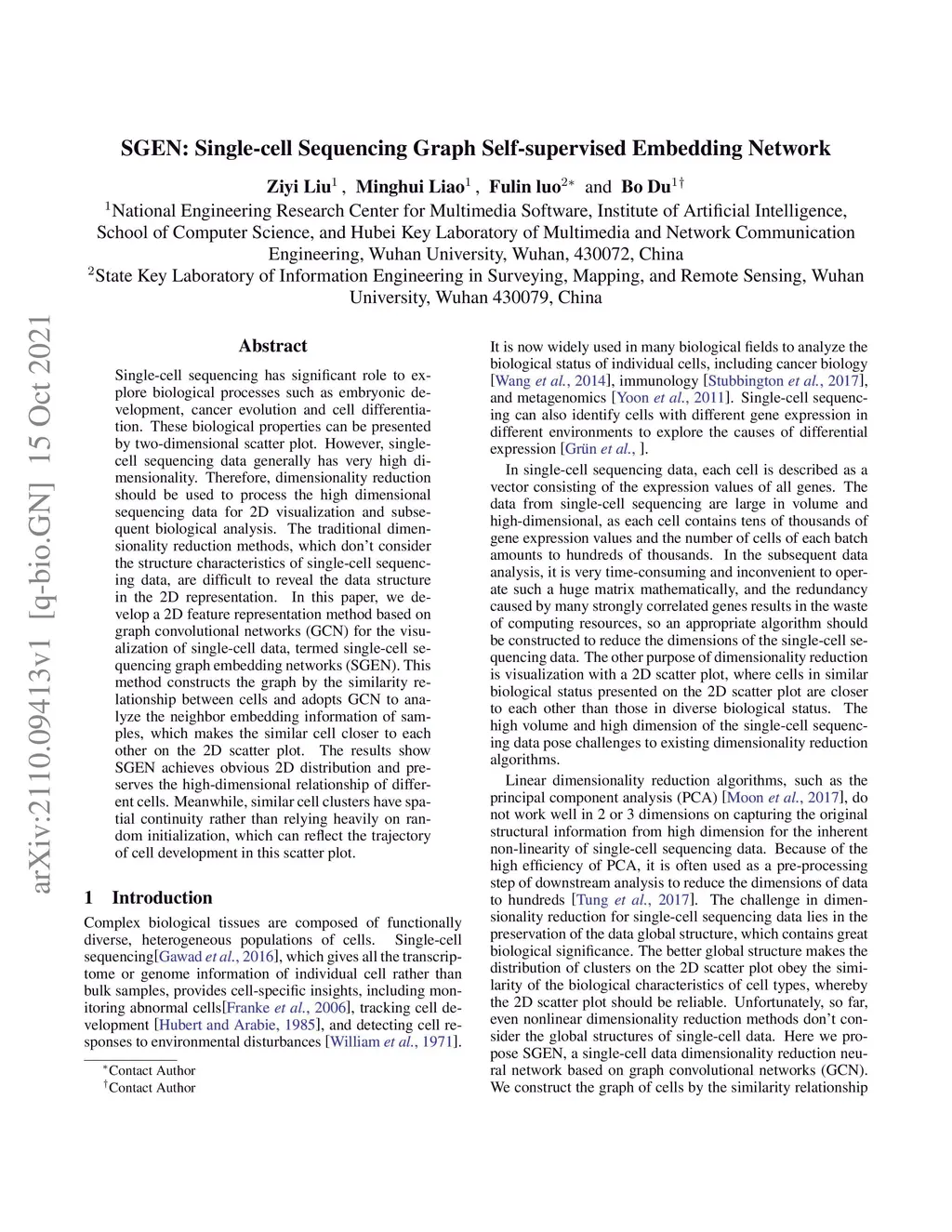SGEN: Single-cell Sequencing Graph Self-supervised Embedding Network