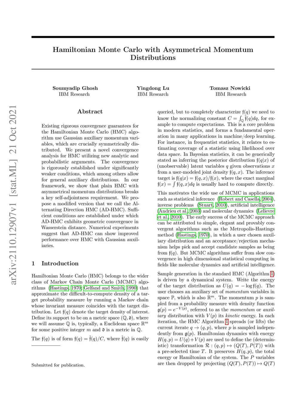 Hamiltonian Monte Carlo with Asymmetrical Momentum Distributions