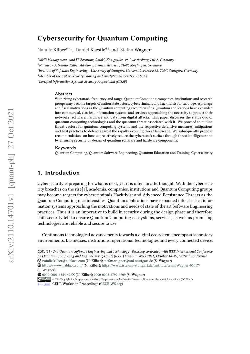 With rising cyberattack frequency and range, Quantum Computing companies, institutions and research groups may become targets of nation-state actors, cybercriminals and hacktivists for sabotage, espionage and fiscal motivations as the Quantum computing race intensifies. Quantum applications have expanded into commercial, classical information systems and services approaching the necessity to protect their networks, software, hardware and data from digital attacks. This paper discusses the status quo of quantum computing technologies and the quantum threat associated with it. We proceed to outline threat vectors for quantum computing systems and the respective defensive measures, mitigations and best practices to defend against the rapidly evolving threat landscape. We subsequently propose recommendations on how to proactively reduce the cyberattack surface through threat intelligence and by ensuring security by design of quantum software and hardware components.