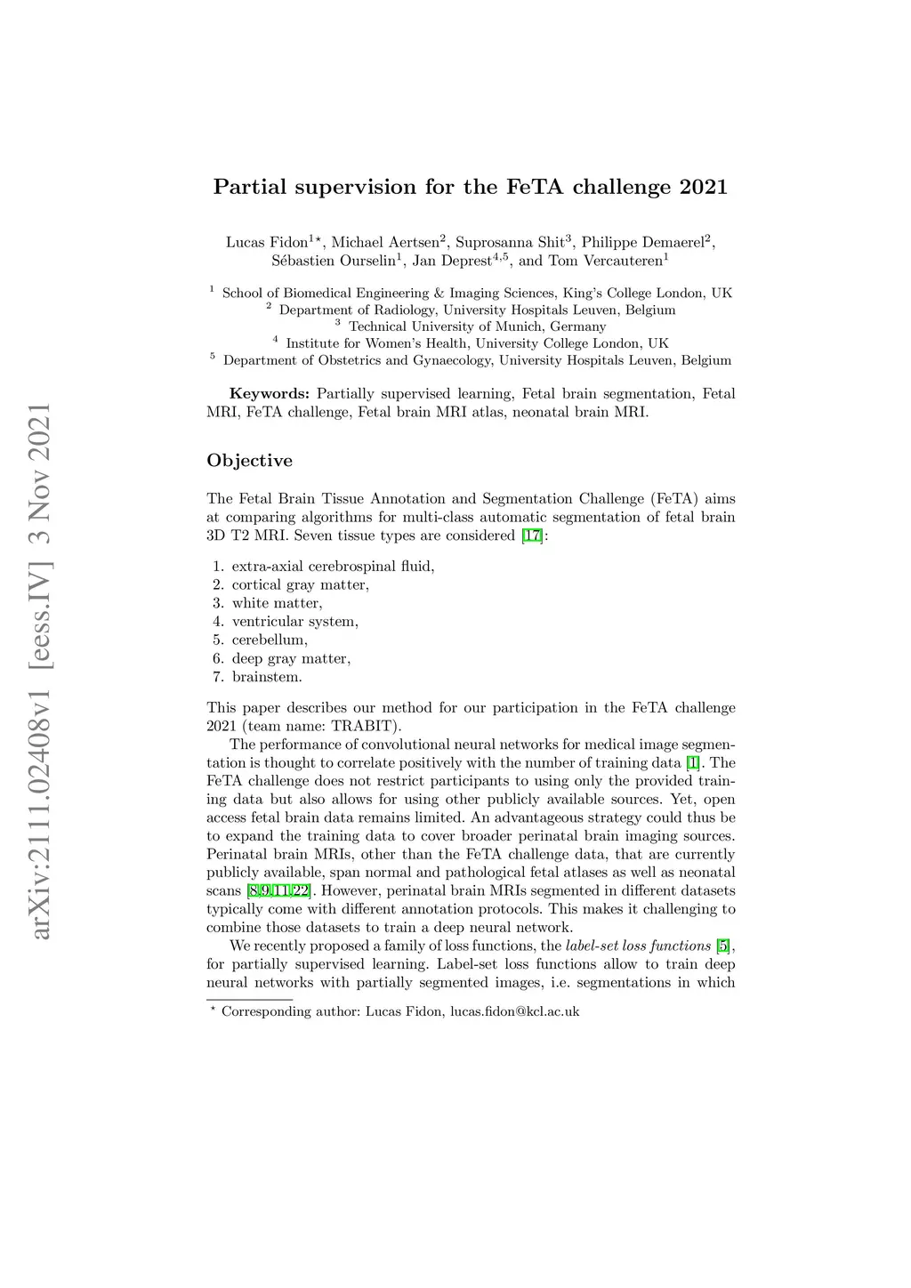 Partial supervision for the FeTA challenge 2021