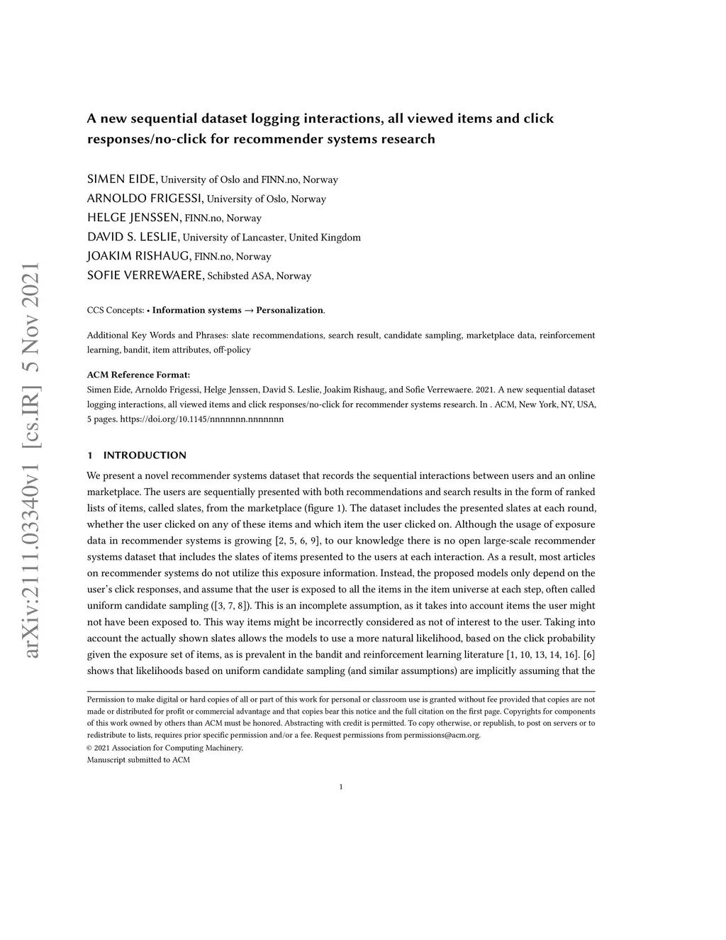 FINN.no Slates Dataset: A new Sequential Dataset Logging Interactions,