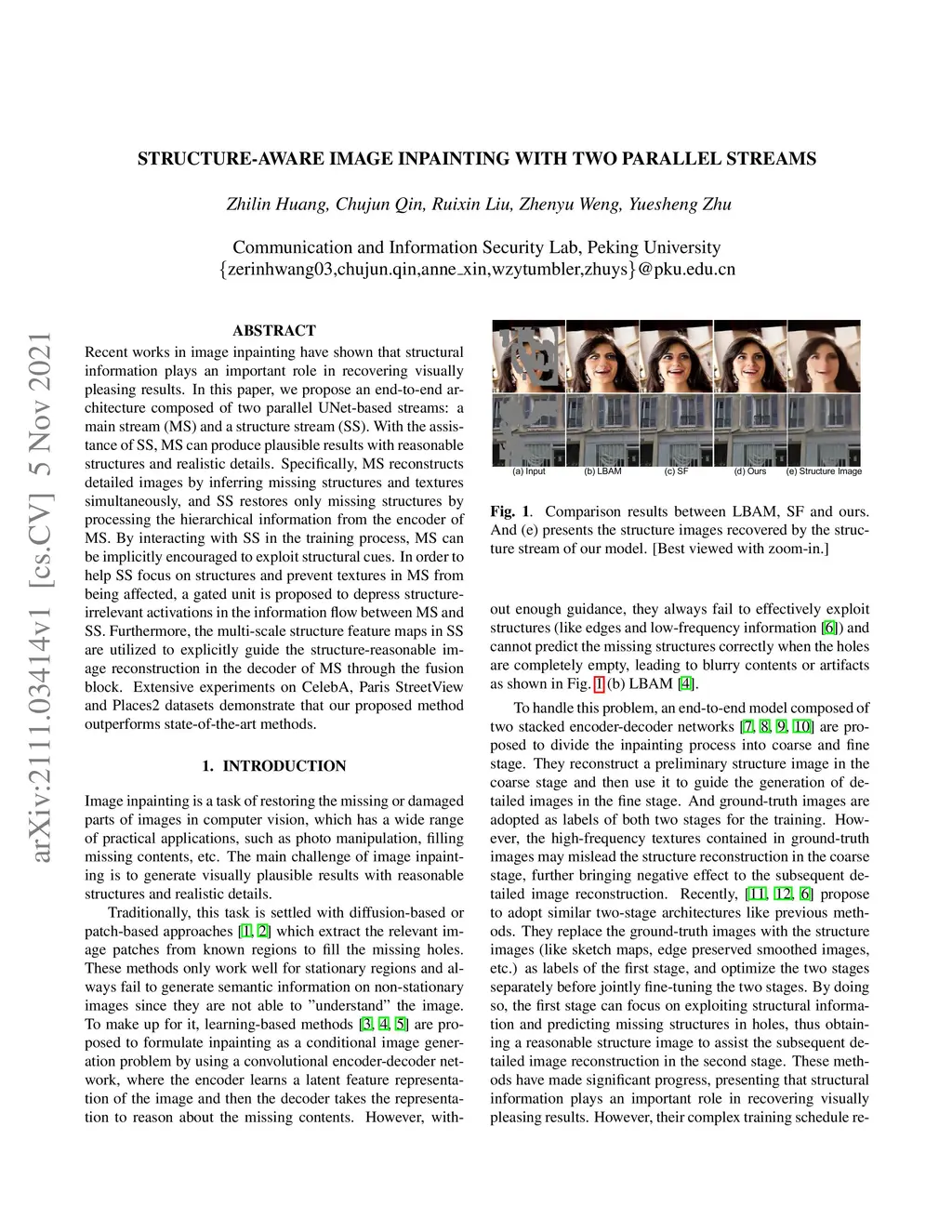 Recent works in image inpainting have shown that structural information plays an important role in recovering visually pleasing results. In this paper, we propose an end-to-end architecture composed of two parallel UNet-based streams: a main stream (MS) and a structure stream (SS). With the assistance of SS, MS can produce plausible results with reasonable structures and realistic details. Specifically, MS reconstructs detailed images by inferring missing structures and textures simultaneously, and SS restores only missing structures by processing the hierarchical information from the encoder of MS. By interacting with SS in the training process, MS can be implicitly encouraged to exploit structural cues. In order to help SS focus on structures and prevent textures in MS from being affected, a gated unit is proposed to depress structure-irrelevant activations in the information flow between MS and SS. Furthermore, the multi-scale structure feature maps in SS are utilized to explicitly guide the structure-reasonable image reconstruction in the decoder of MS through the fusion block. Extensive experiments on CelebA, Paris StreetView and Places2 datasets demonstrate that our proposed method outperforms state-of-the-art methods.