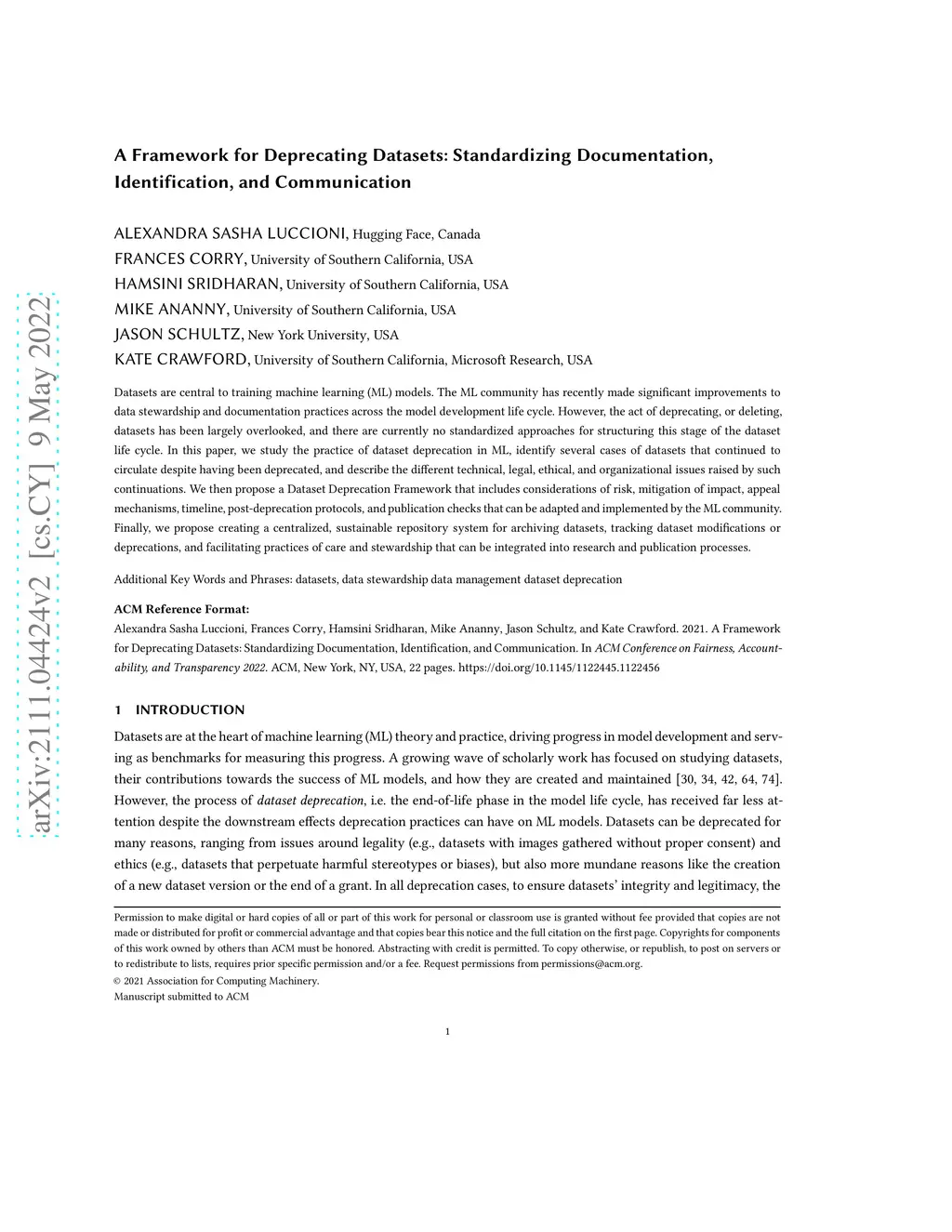 A Framework for Deprecating Datasets: Standardizing Documentation,