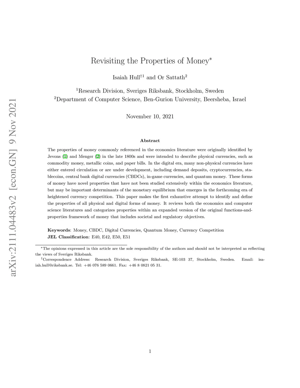 Revisiting the Properties of Money