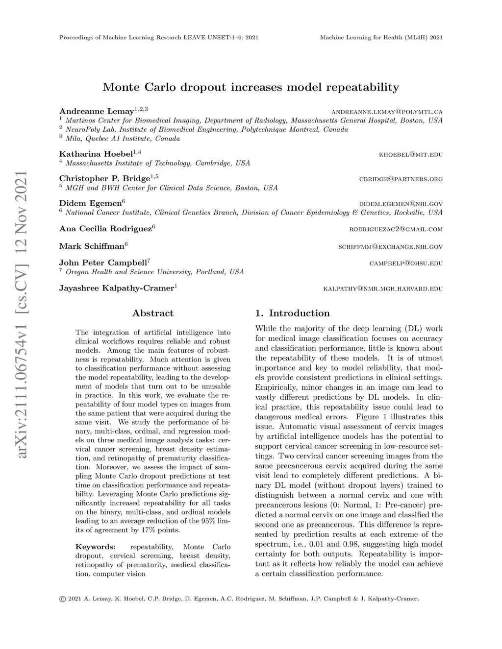 Monte Carlo dropout increases model repeatability