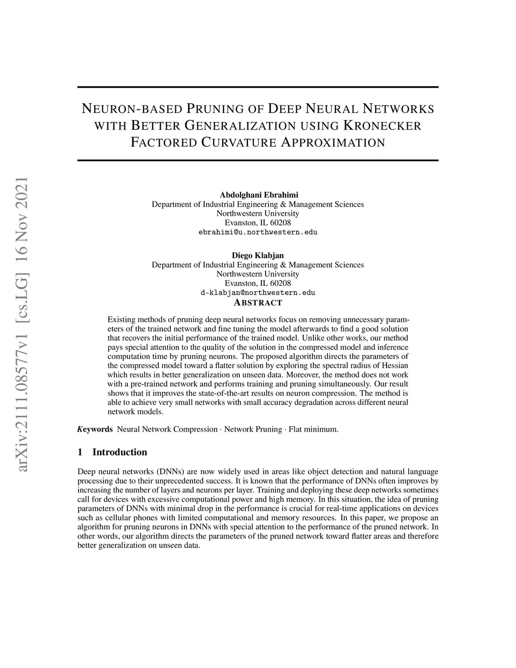 Existing methods of pruning deep neural networks focus on removing unnecessary parameters of the trained network and fine tuning the model afterwards to find a good solution that recovers the initial performance of the trained model. Unlike other works, our method pays special attention to the quality of the solution in the compressed model and inference computation time by pruning neurons. The proposed algorithm directs the parameters of the compressed model toward a flatter solution by exploring the spectral radius of Hessian which results in better generalization on unseen data. Moreover, the method does not work with a pre-trained network and performs training and pruning simultaneously. Our result shows that it improves the state-of-the-art results on neuron compression. The method is able to achieve very small networks with small accuracy degradation across different neural network models.