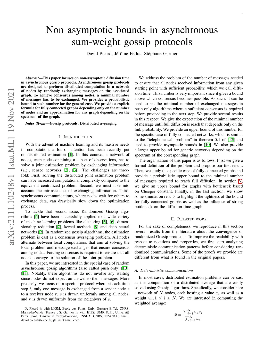 This paper focuses on non-asymptotic diffusion time in asynchronous gossip protocols. Asynchronous gossip protocols are designed to perform distributed computation in a network of nodes by randomly exchanging messages on the associated graph. To achieve consensus among nodes, a minimal number of messages has to be exchanged. We provides a probabilistic bound to such number for the general case. We provide a explicit formula for fully connected graphs depending only on the number of nodes and an approximation for any graph depending on the spectrum of the graph.