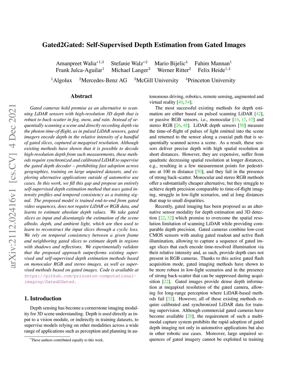 Gated2Gated: Self-Supervised Depth Estimation from Gated Images
