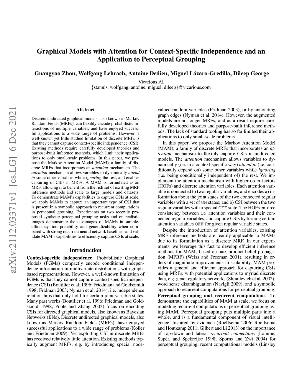 Discrete undirected graphical models, also known as Markov Random Fields (MRFs), can flexibly encode probabilistic interactions of multiple variables, and have enjoyed successful applications to a wide range of problems. However, a well-known yet little studied limitation of discrete MRFs is that they cannot capture context-specific independence (CSI). Existing methods require carefully developed theories and purpose-built inference methods, which limit their applications to only small-scale problems. In this paper, we propose the Markov Attention Model (MAM), a family of discrete MRFs that incorporates an attention mechanism. The attention mechanism allows variables to dynamically attend to some other variables while ignoring the rest, and enables capturing of CSIs in MRFs. A MAM is formulated as an MRF, allowing it to benefit from the rich set of existing MRF inference methods and scale to large models and datasets. To demonstrate MAM's capabilities to capture CSIs at scale, we apply MAMs to capture an important type of CSI that is present in a symbolic approach to recurrent computations in perceptual grouping. Experiments on two recently proposed synthetic perceptual grouping tasks and on realistic images demonstrate the advantages of MAMs in sample-efficiency, interpretability and generalizability when compared with strong recurrent neural network baselines, and validate MAM's capabilities to efficiently capture CSIs at scale.