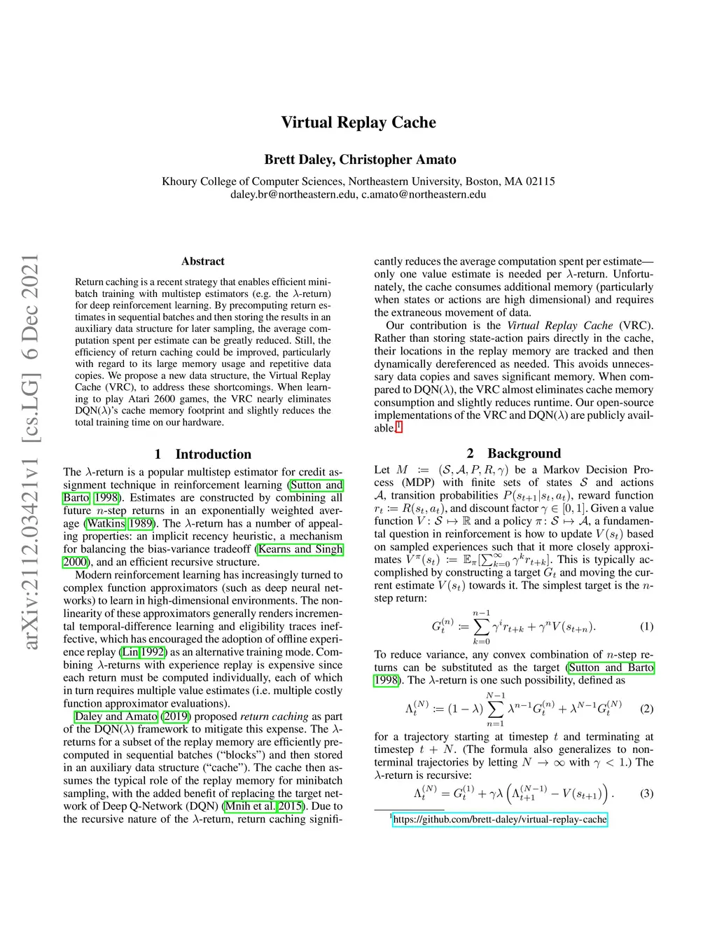 Return caching is a recent strategy that enables efficient minibatch training with multistep estimators (e.g. the {\lambda}-return) for deep reinforcement learning. By precomputing return estimates in sequential batches and then storing the results in an auxiliary data structure for later sampling, the average computation spent per estimate can be greatly reduced. Still, the efficiency of return caching could be improved, particularly with regard to its large memory usage and repetitive data copies. We propose a new data structure, the Virtual Replay Cache (VRC), to address these shortcomings. When learning to play Atari 2600 games, the VRC nearly eliminates DQN({\lambda})'s cache memory footprint and slightly reduces the total training time on our hardware.