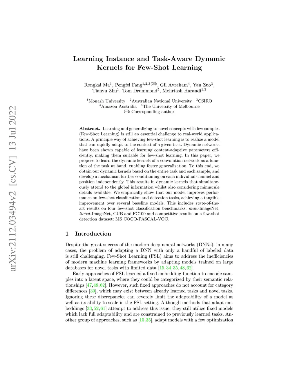 Learning Instance and Task-Aware Dynamic Kernels for Few Shot Learning