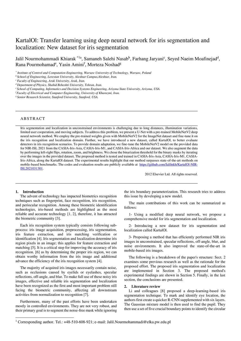KartalOl: Transfer learning using deep neural network for iris