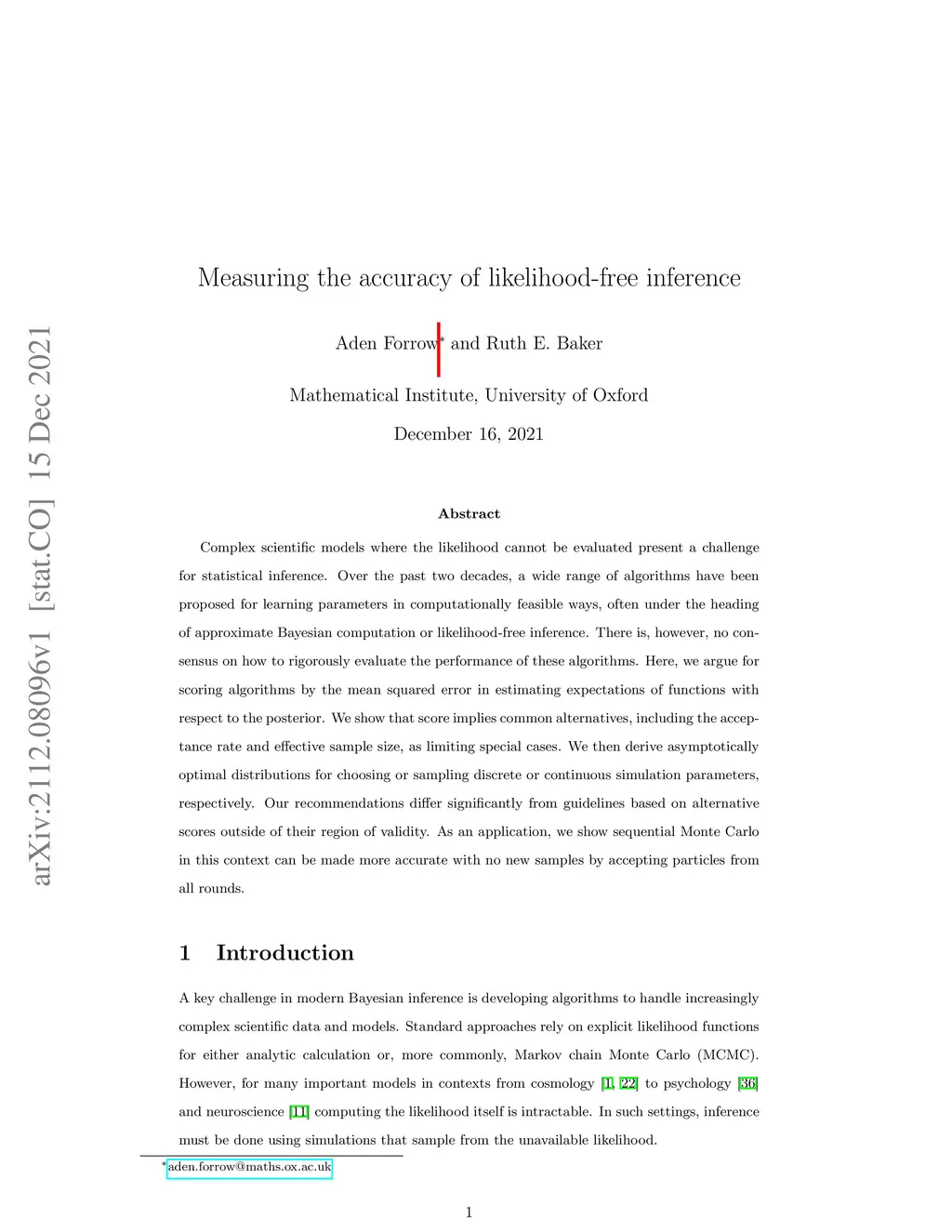 Complex scientific models where the likelihood cannot be evaluated present a challenge for statistical inference. Over the past two decades, a wide range of algorithms have been proposed for learning parameters in computationally feasible ways, often under the heading of approximate Bayesian computation or likelihood-free inference. There is, however, no consensus on how to rigorously evaluate the performance of these algorithms. Here, we argue for scoring algorithms by the mean squared error in estimating expectations of functions with respect to the posterior. We show that score implies common alternatives, including the acceptance rate and effective sample size, as limiting special cases. We then derive asymptotically optimal distributions for choosing or sampling discrete or continuous simulation parameters, respectively. Our recommendations differ significantly from guidelines based on alternative scores outside of their region of validity. As an application, we show sequential Monte Carlo in this context can be made more accurate with no new samples by accepting particles from all rounds.