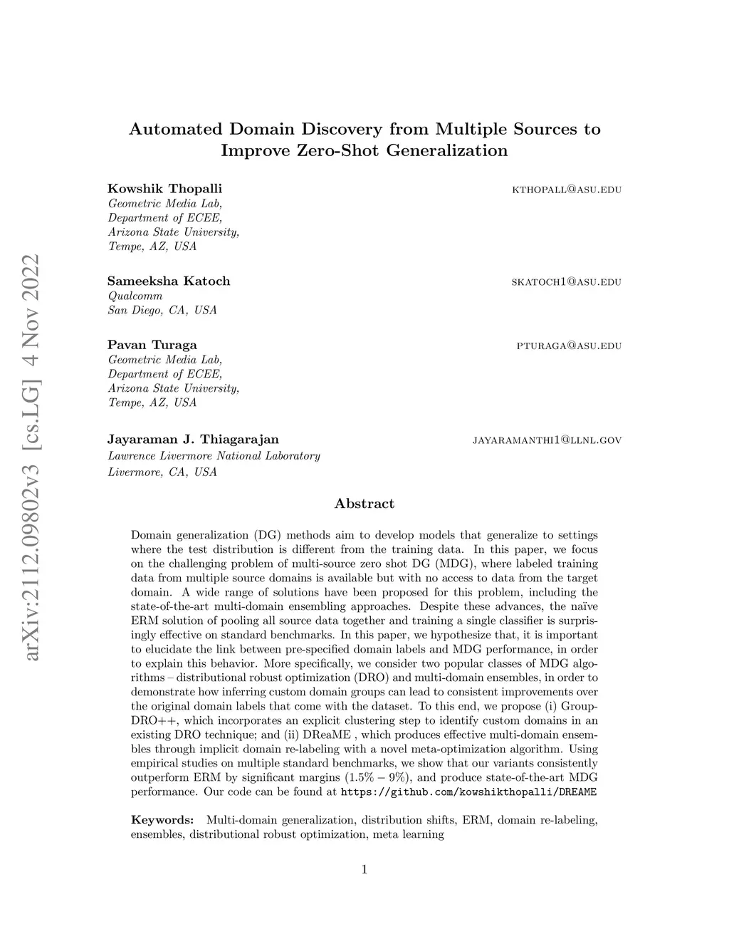 Automated Domain Discovery from Multiple Sources to Improve Zero-Shot Generalization