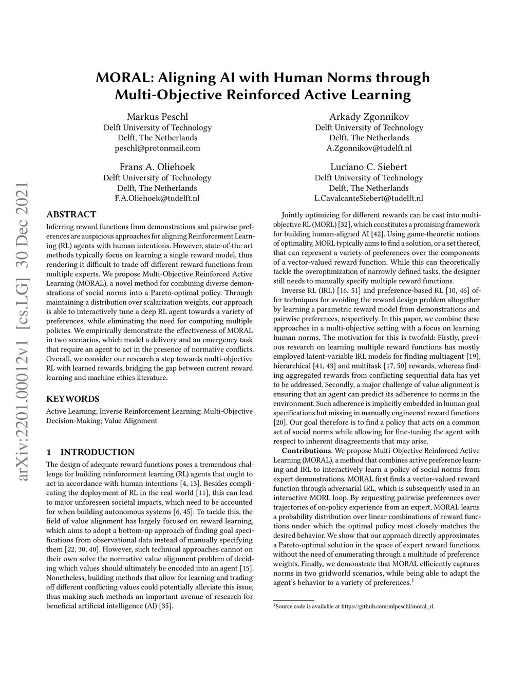 MORAL: Aligning AI with Human Norms through Multi-Objective Reinforced
