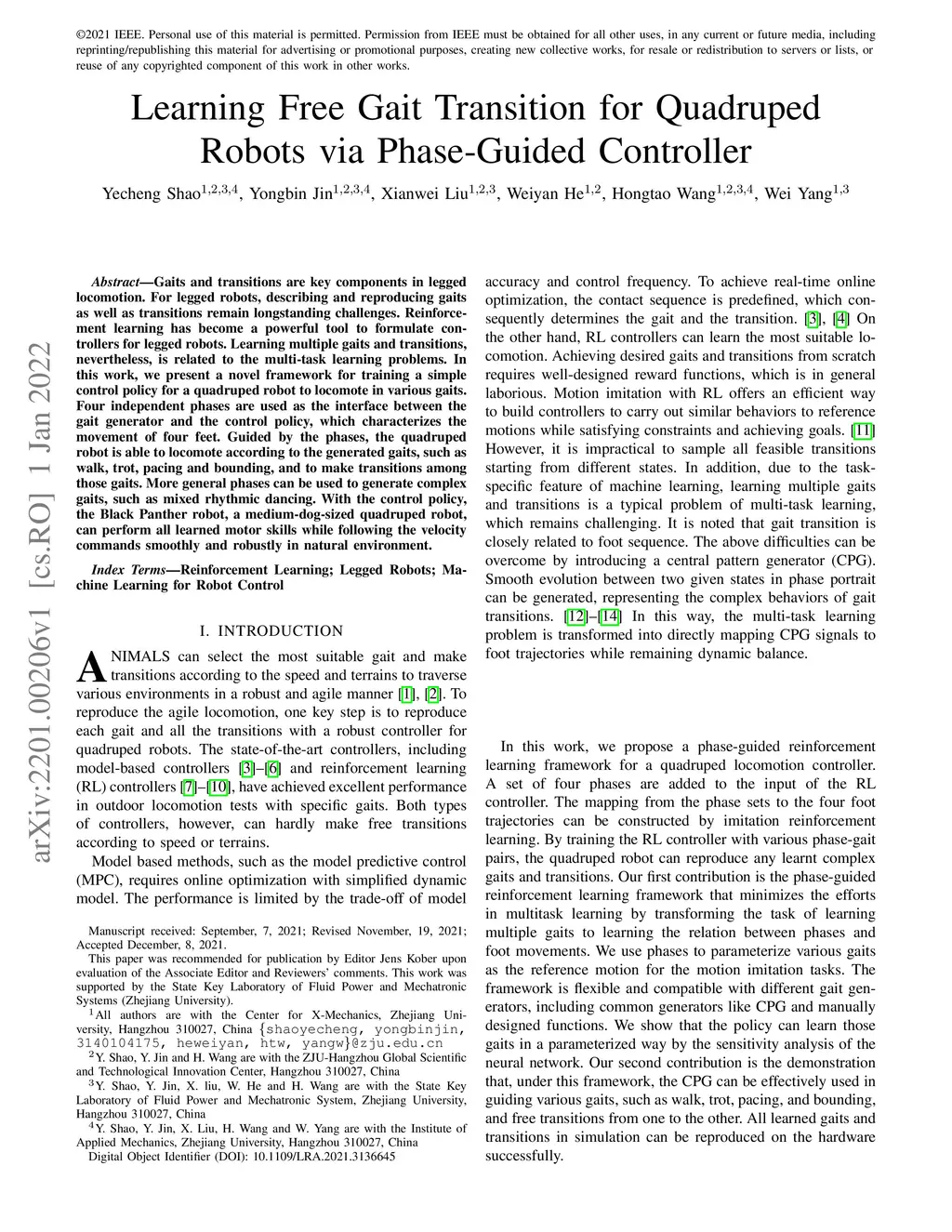 Learning Free Gait Transition for Quadruped Robots via Phase-Guided