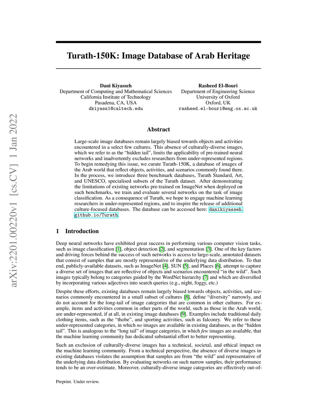 Large-scale image databases remain largely biased towards objects and activities encountered in a select few cultures. This absence of culturally-diverse images, which we refer to as the hidden tail, limits the applicability of pre-trained neural networks and inadvertently excludes researchers from under-represented regions. To begin remedying this issue, we curate Turath-150K, a database of images of the Arab world that reflect objects, activities, and scenarios commonly found there. In the process, we introduce three benchmark databases, Turath Standard, Art, and UNESCO, specialised subsets of the Turath dataset. After demonstrating the limitations of existing networks pre-trained on ImageNet when deployed on such benchmarks, we train and evaluate several networks on the task of image classification. As a consequence of Turath, we hope to engage machine learning researchers in under-represented regions, and to inspire the release of additional culture-focused databases. The database can be accessed here: danikiyasseh.github.io/Turath.