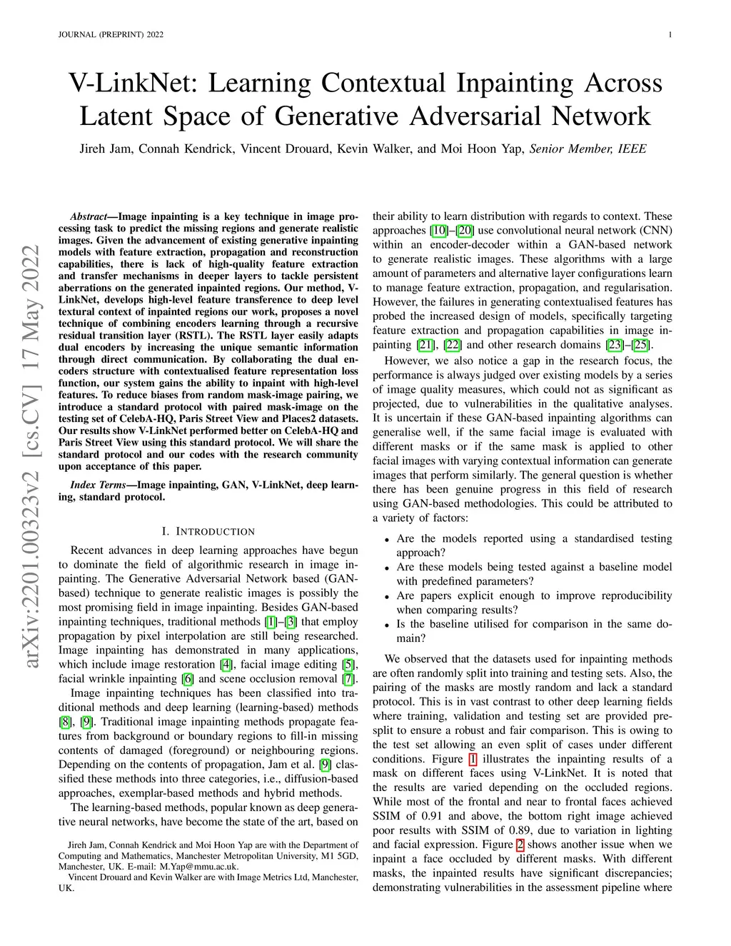 V-LinkNet: Learning Contextual Inpainting Across Latent Space of