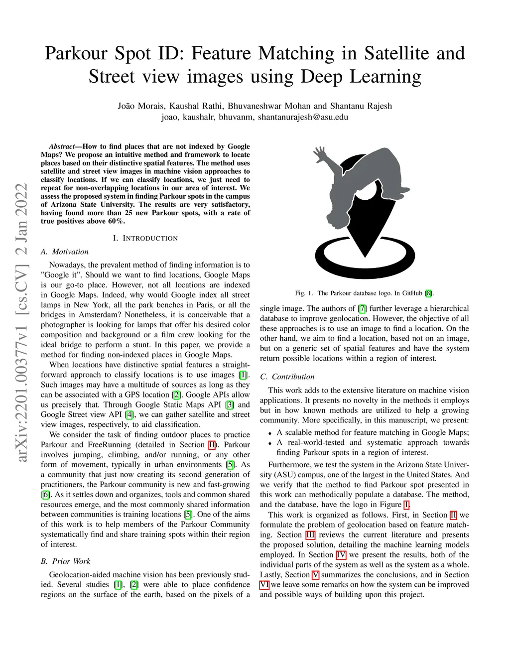 Parkour Spot ID: Feature Matching in Satellite and Street view images