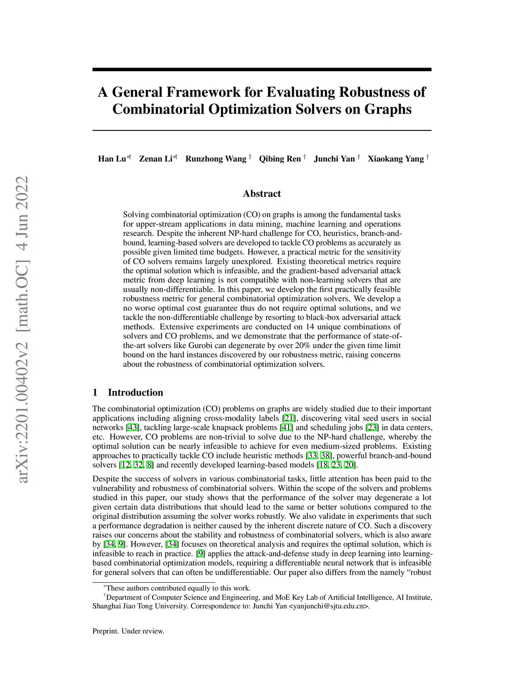 Solving combinatorial optimization (CO) on graphs is among the fundamental tasks for upper-stream applications in data mining, machine learning and operations research. Despite the inherent NP-hard challenge for CO, heuristics, branch-and-bound, learning-based solvers are developed to tackle CO problems as accurately as possible given limited time budgets. However, a practical metric for the sensitivity of CO solvers remains largely unexplored. Existing theoretical metrics require the optimal solution which is infeasible, and the gradient-based adversarial attack metric from deep learning is not compatible with non-learning solvers that are usually non-differentiable. In this paper, we develop the first practically feasible robustness metric for general combinatorial optimization solvers. We develop a no worse optimal cost guarantee thus do not require optimal solutions, and we tackle the non-differentiable challenge by resorting to black-box adversarial attack methods. Extensive experiments are conducted on 14 unique combinations of solvers and CO problems, and we demonstrate that the performance of state-of-the-art solvers like Gurobi can degenerate by over 20% under the given time limit bound on the hard instances discovered by our robustness metric, raising concerns about the robustness of combinatorial optimization solvers.