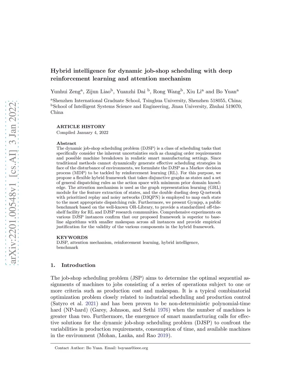 Hybrid intelligence for dynamic job-shop scheduling with deep
