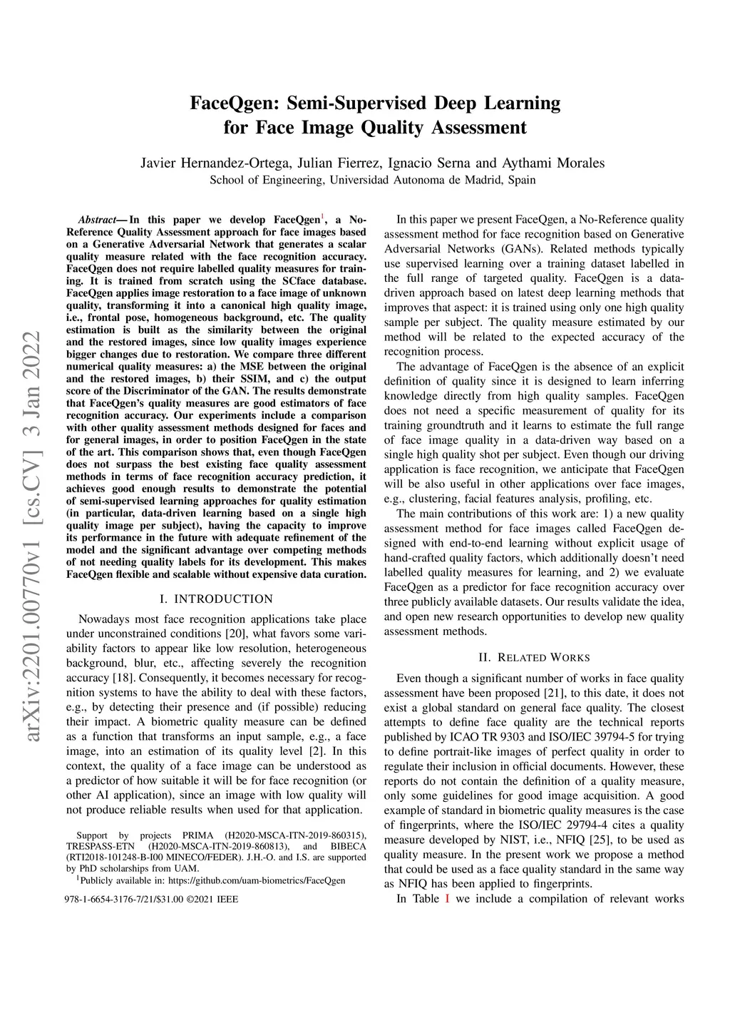 FaceQgen: Semi-Supervised Deep Learning for Face Image Quality