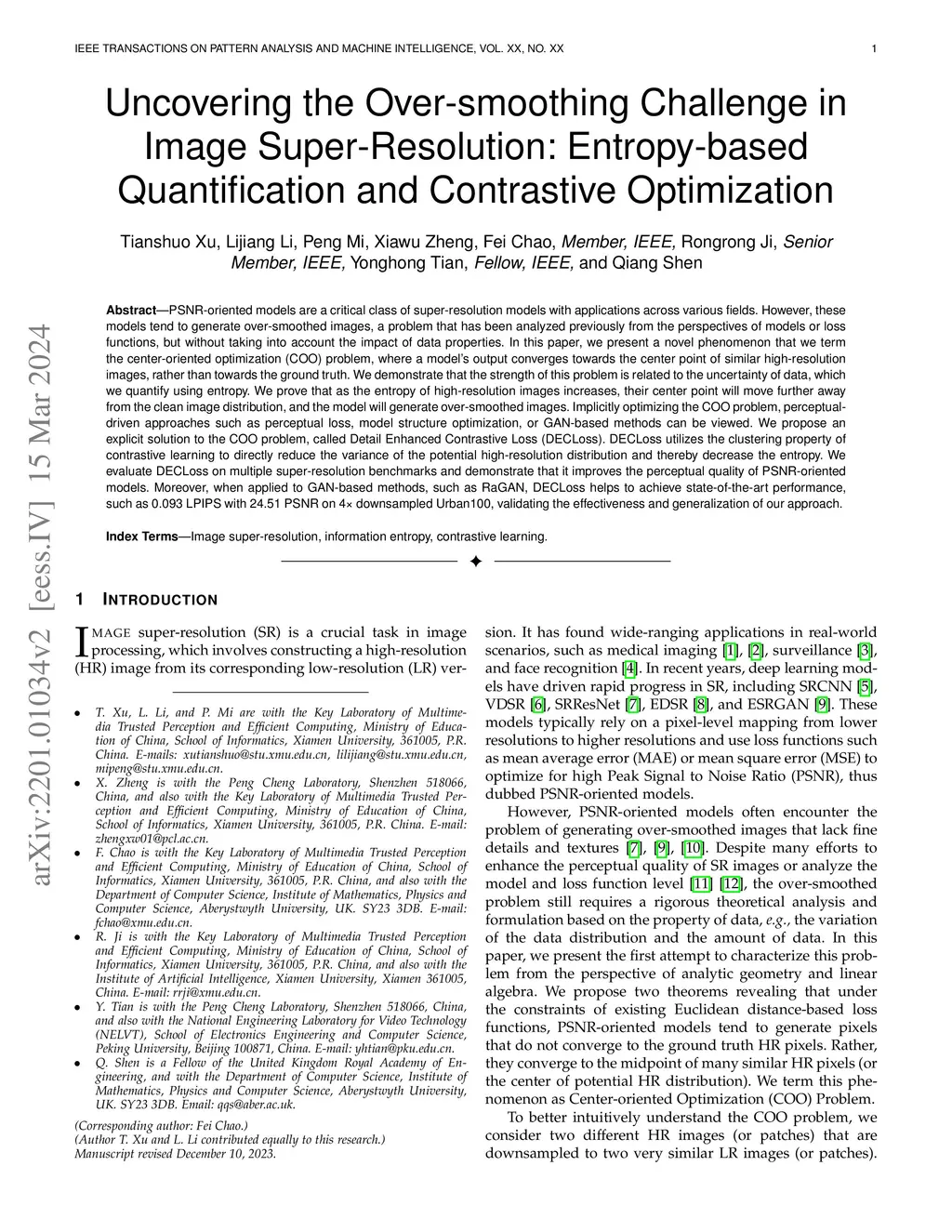 PSNR-oriented models are a critical class of super-resolution models with applications across various fields. However, these models tend to generate over-smoothed images, a problem that has been analyzed previously from the perspectives of models or loss functions, but without taking into account the impact of data properties. In this paper, we present a novel phenomenon that we term the center-oriented optimization (COO) problem, where a model's output converges towards the center point of similar high-resolution images, rather than towards the ground truth. We demonstrate that the strength of this problem is related to the uncertainty of data, which we quantify using entropy. We prove that as the entropy of high-resolution images increases, their center point will move further away from the clean image distribution, and the model will generate over-smoothed images. Implicitly optimizing the COO problem, perceptual-driven approaches such as perceptual loss, model structure optimization, or GAN-based methods can be viewed. We propose an explicit solution to the COO problem, called Detail Enhanced Contrastive Loss (DECLoss). DECLoss utilizes the clustering property of contrastive learning to directly reduce the variance of the potential high-resolution distribution and thereby decrease the entropy. We evaluate DECLoss on multiple super-resolution benchmarks and demonstrate that it improves the perceptual quality of PSNR-oriented models. Moreover, when applied to GAN-based methods, such as RaGAN, DECLoss helps to achieve state-of-the-art performance, such as 0.093 LPIPS with 24.51 PSNR on 4x downsampled Urban100, validating the effectiveness and generalization of our approach.