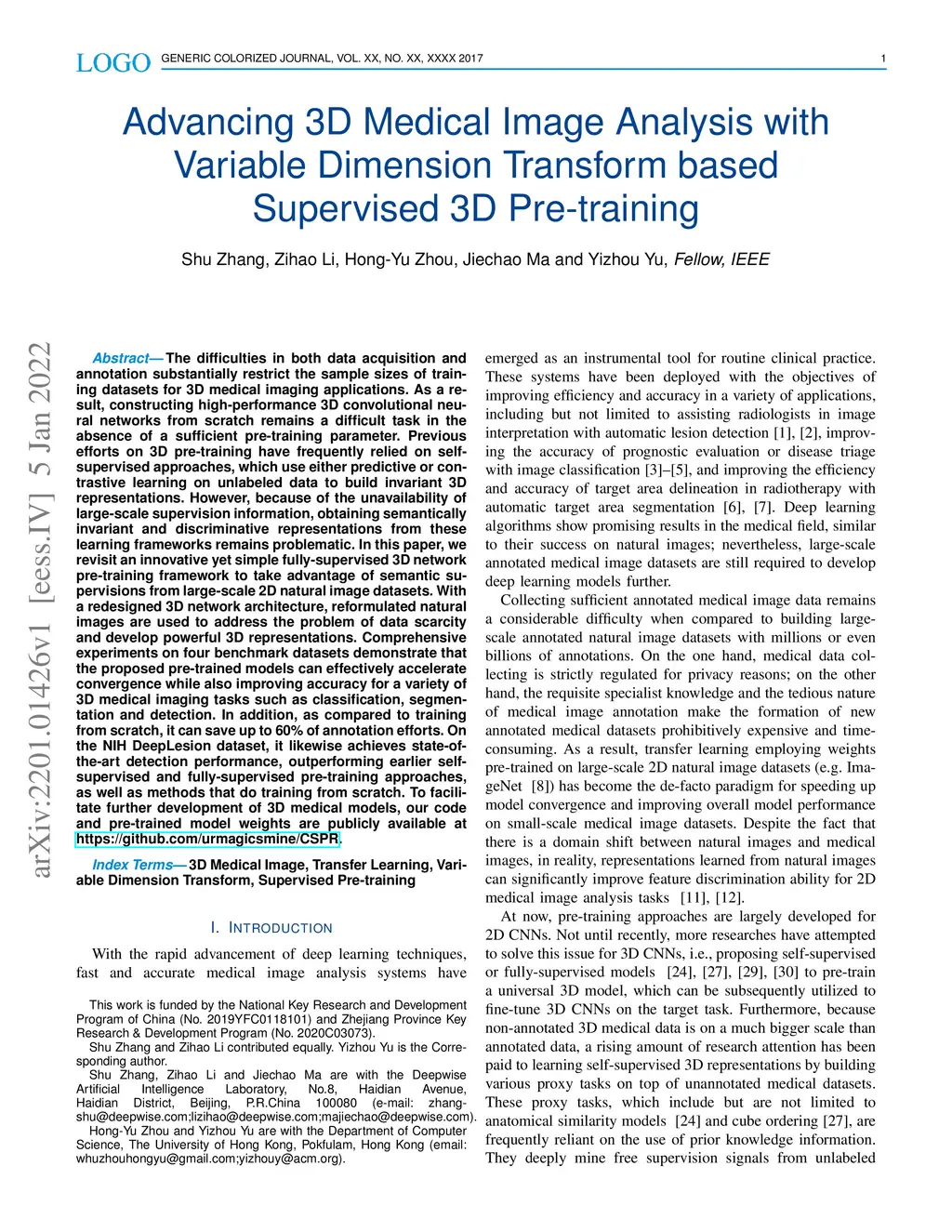 Advancing 3D Medical Image Analysis with Variable Dimension Transform