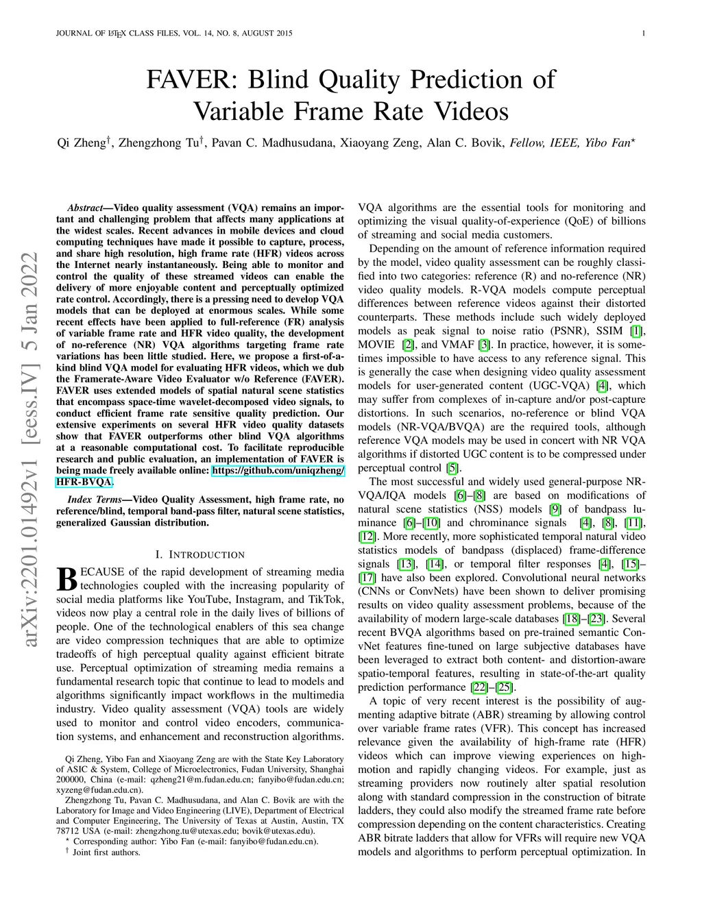 FAVER: Blind Quality Prediction of Variable Frame Rate Videos