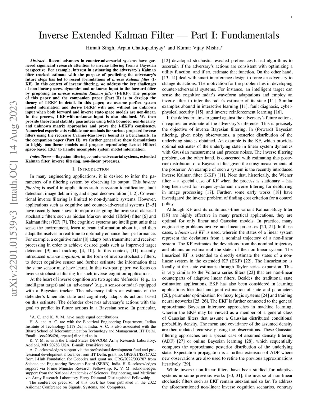 Inverse Extended Kalman Filter -- Part I: Fundamentals