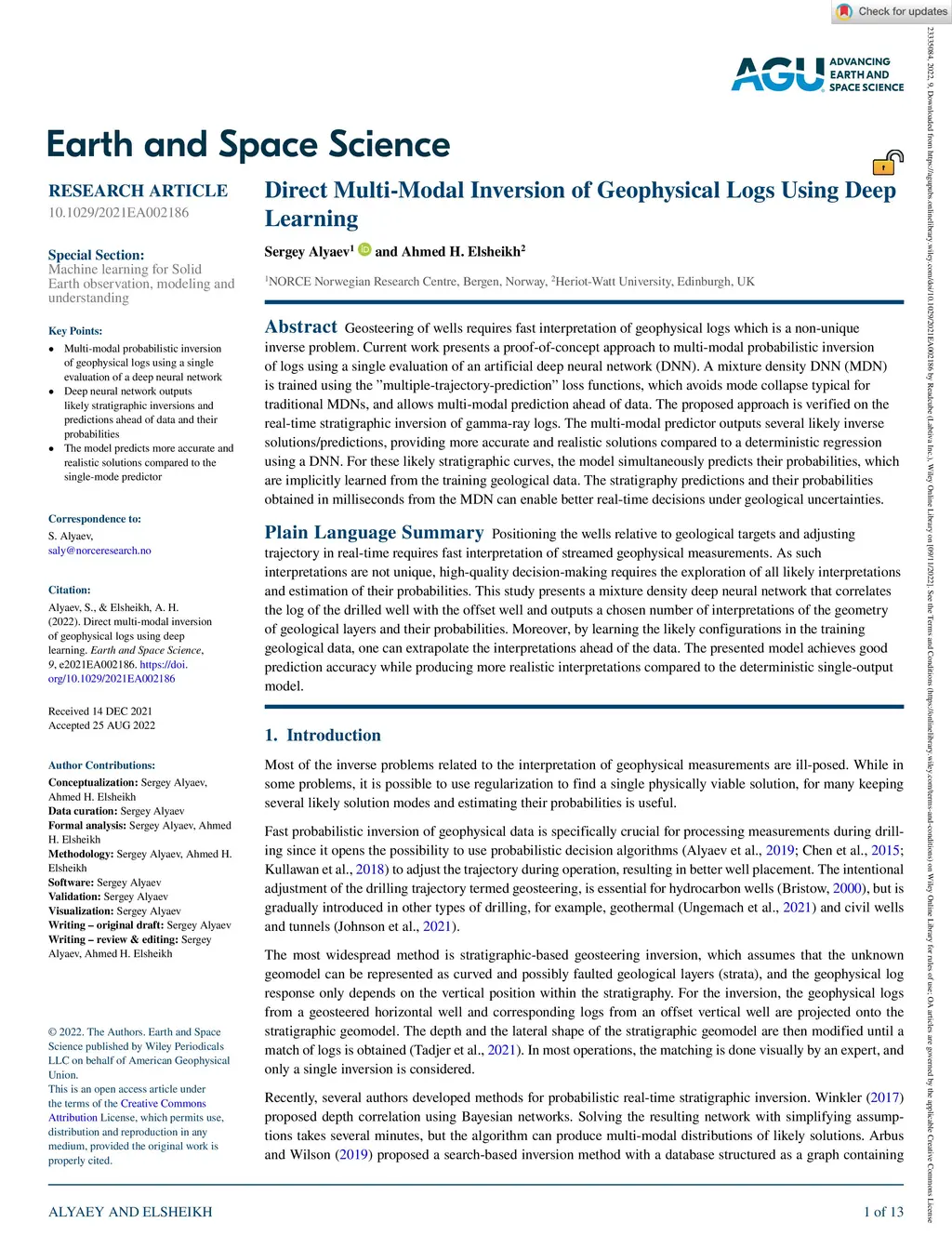 Geosteering of wells requires fast interpretation of geophysical logs, which is a non-unique inverse problem. Current work presents a proof-of-concept approach to multi-modal probabilistic inversion of logs using a single evaluation of an artificial deep neural network (DNN). A mixture density DNN (MDN) is trained using the "multiple-trajectory-prediction" (MTP) loss functions, which avoids mode collapse typical for traditional MDNs, and allows multi-modal prediction ahead of data. The proposed approach is verified on the real-time stratigraphic inversion of gamma-ray logs. The multi-modal predictor outputs several likely inverse solutions/predictions, providing more accurate and realistic solutions than a deterministic regression using a DNN. For these likely stratigraphic curves, the model simultaneously predicts their probabilities, which are implicitly learned from the training geological data. The stratigraphy predictions and their probabilities obtained in milliseconds from the MDN can enable better real-time decisions under geological uncertainties.