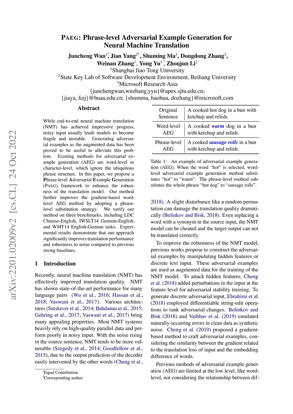 PAEG: Phrase-level Adversarial Example Generation for Neural Machine