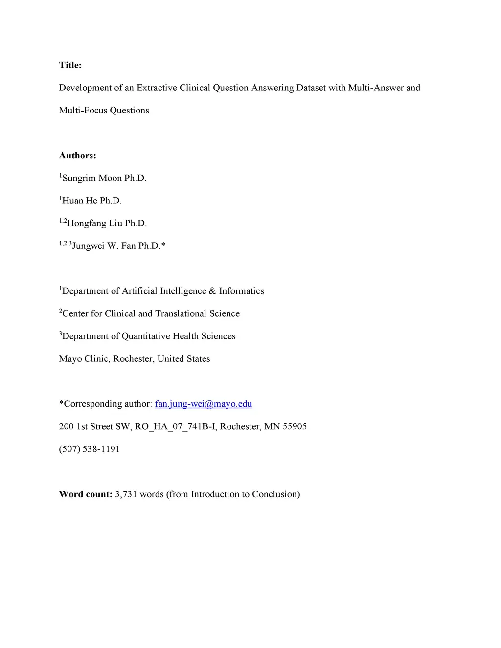 Development of an Extractive Clinical Question Answering Dataset with