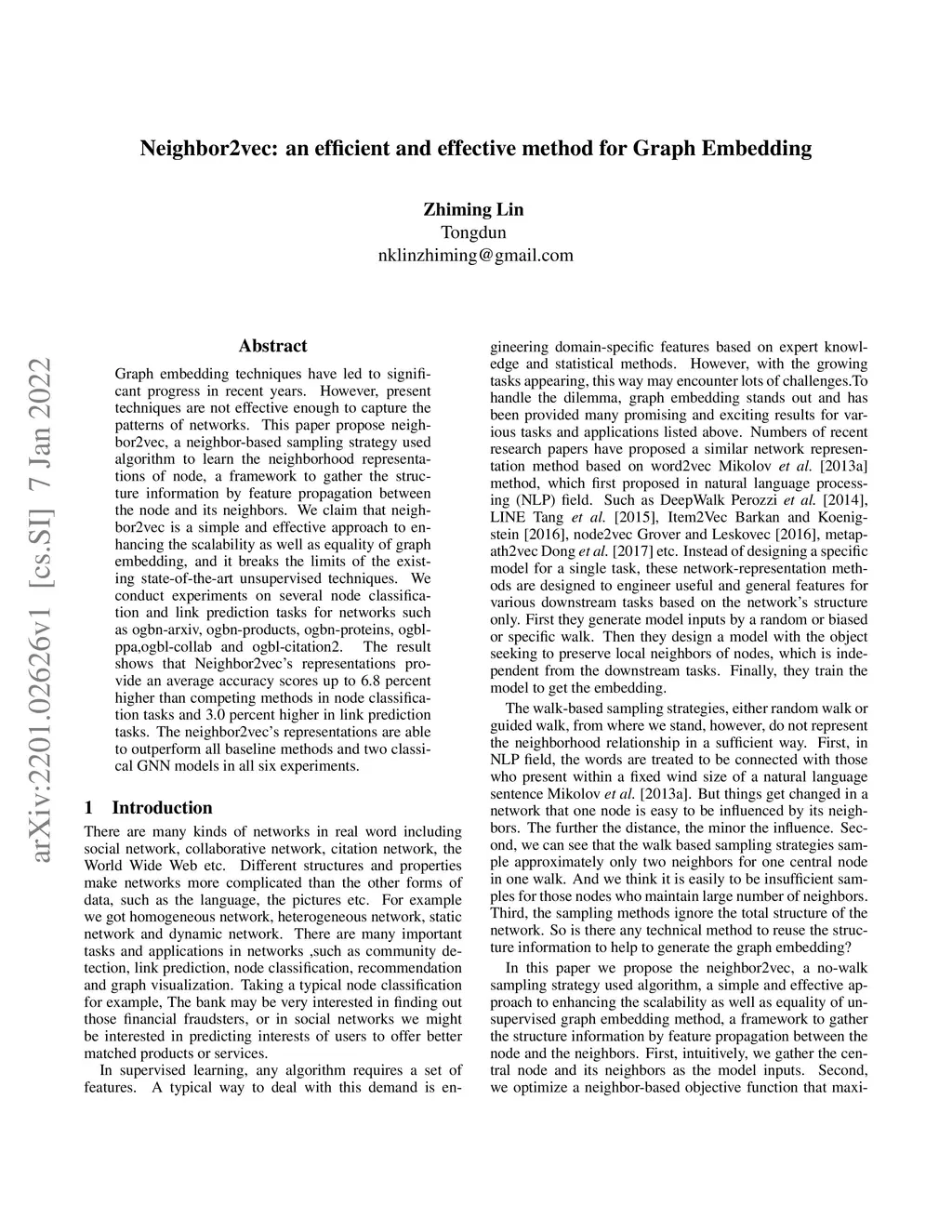 Neighbor2vec: an efficient and effective method for Graph Embedding