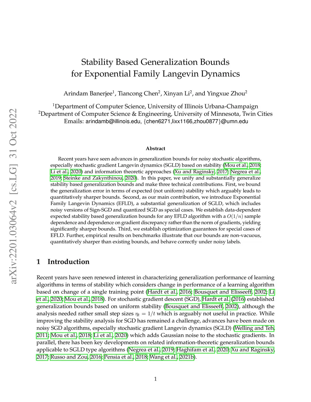 Stability Based Generalization Bounds for Exponential Family Langevin