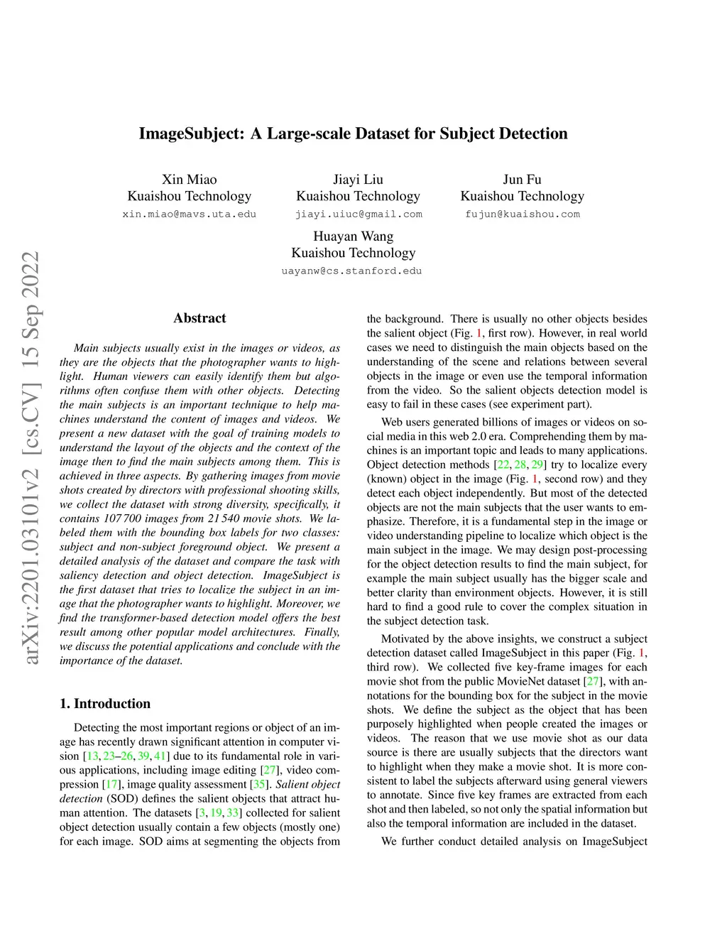 ImageSubject: A Large-scale Dataset for Subject Detection