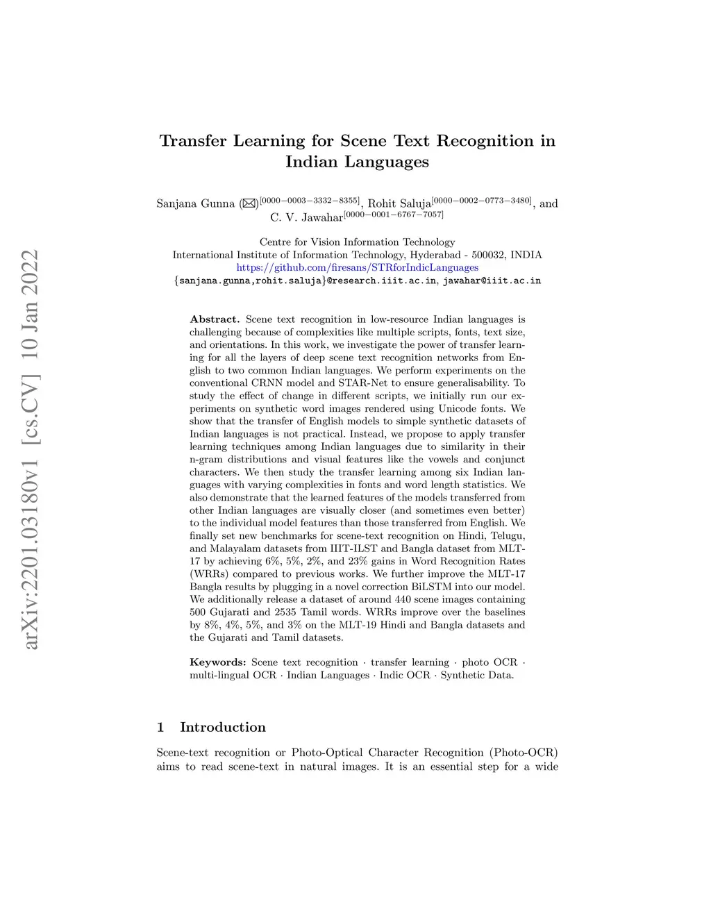 Transfer Learning for Scene Text Recognition in Indian Languages