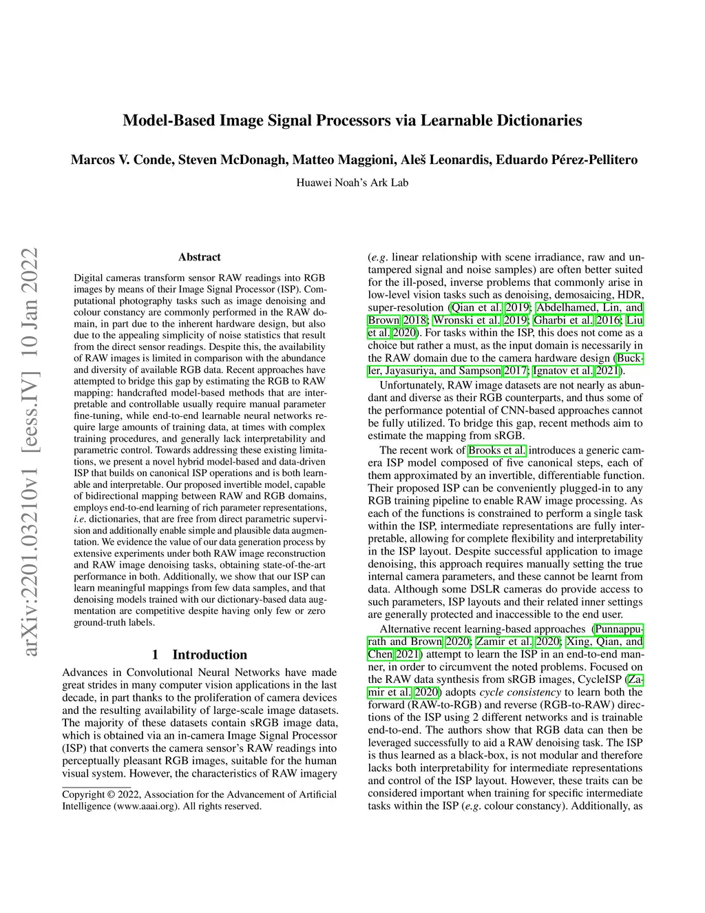 Model-Based Image Signal Processors via Learnable Dictionaries