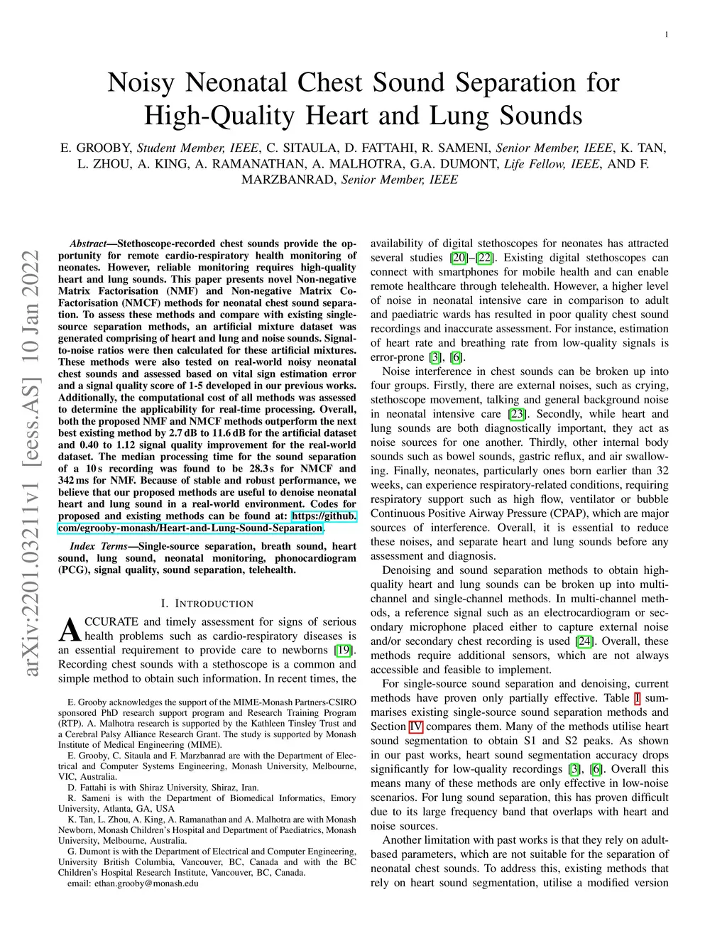 Noisy Neonatal Chest Sound Separation for High-Quality Heart and Lung