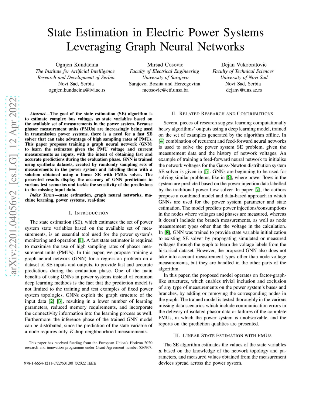 State Estimation in Electric Power Systems Leveraging Graph Neural