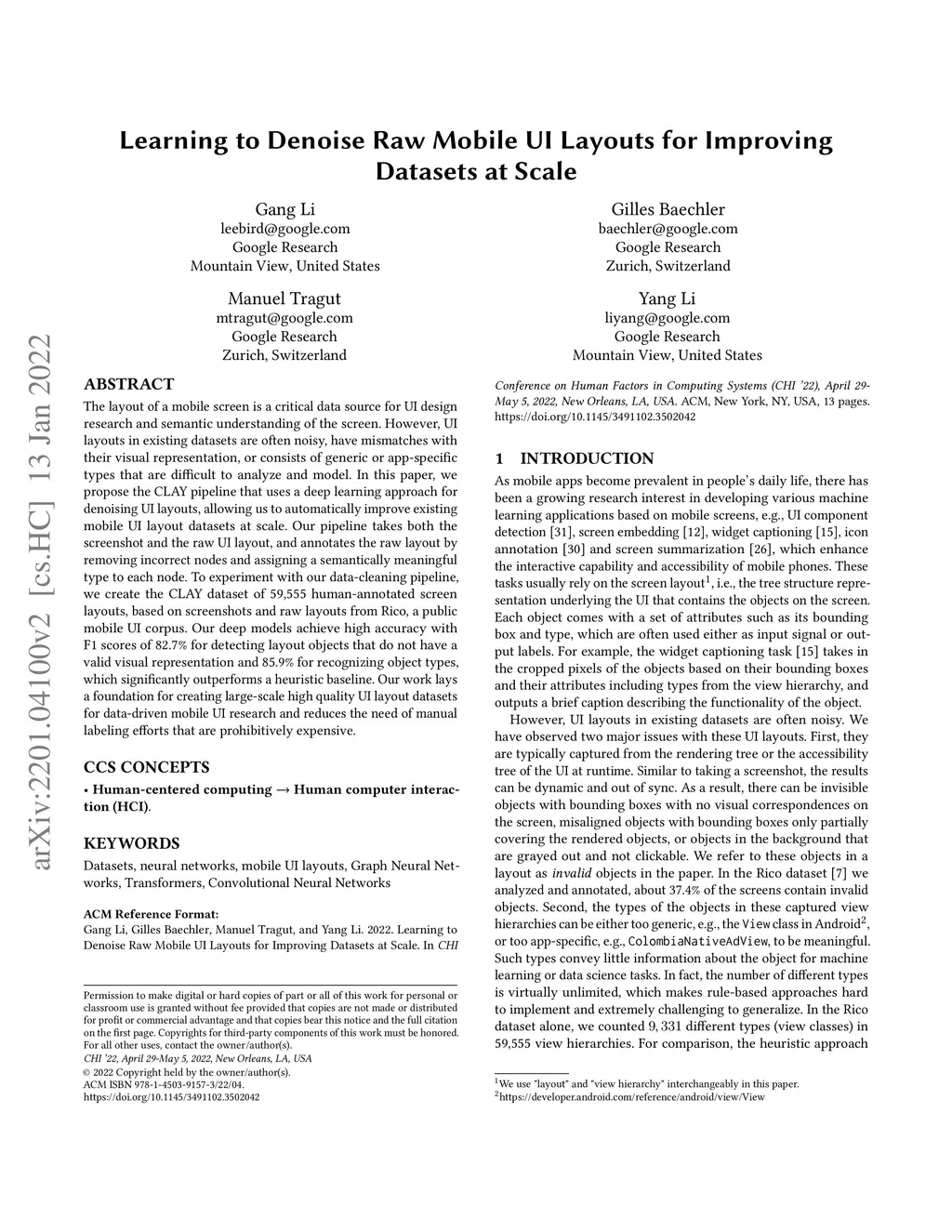 Learning to Denoise Raw Mobile UI Layouts for Improving Datasets at