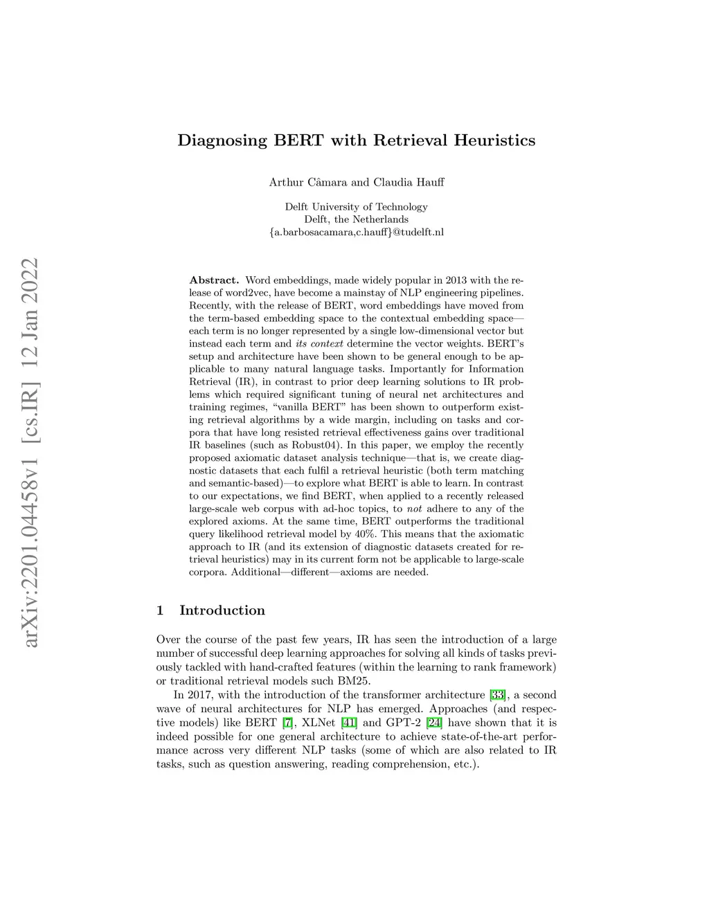 Diagnosing BERT with Retrieval Heuristics