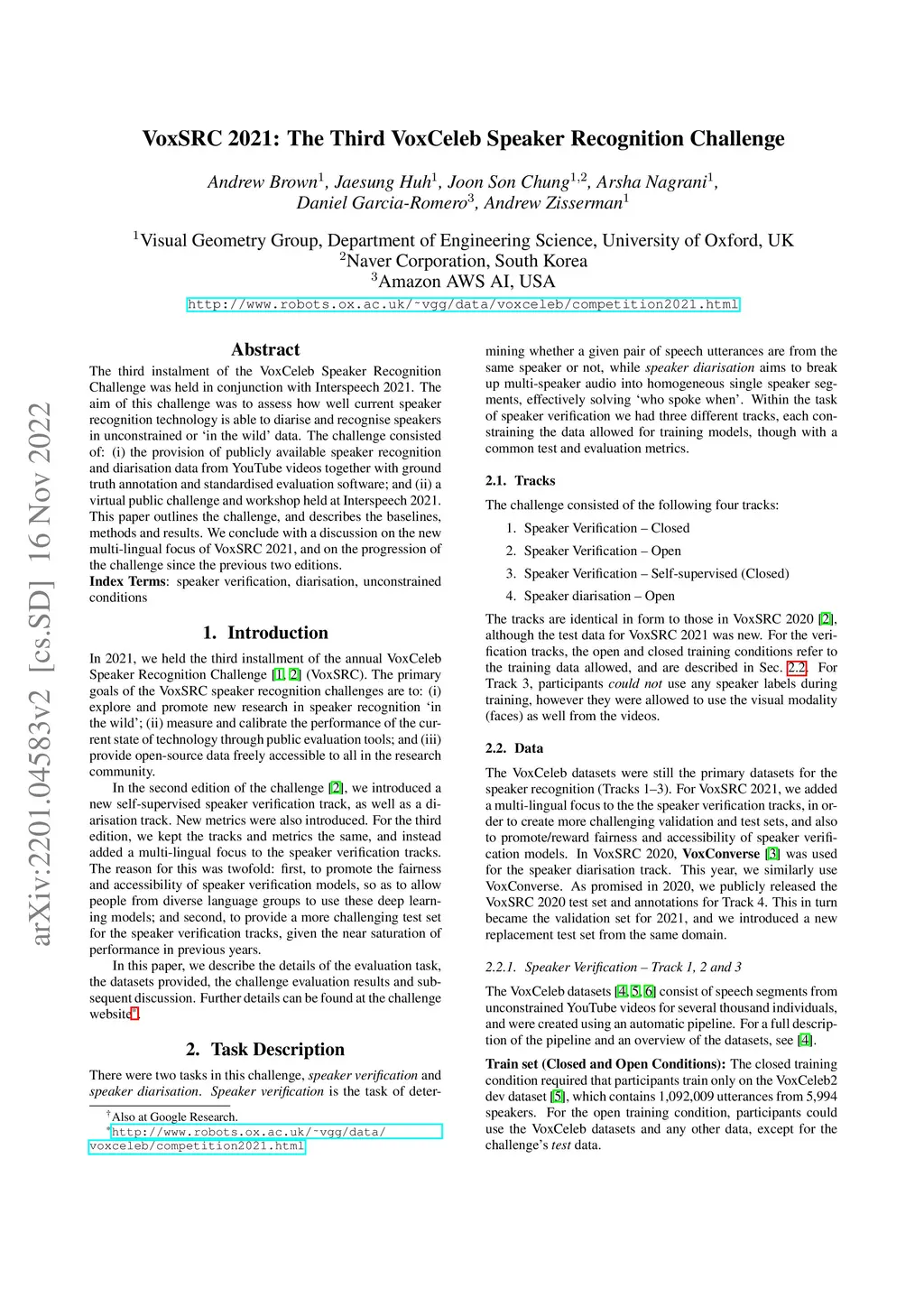 VoxSRC 2021: The Third VoxCeleb Speaker Recognition Challenge