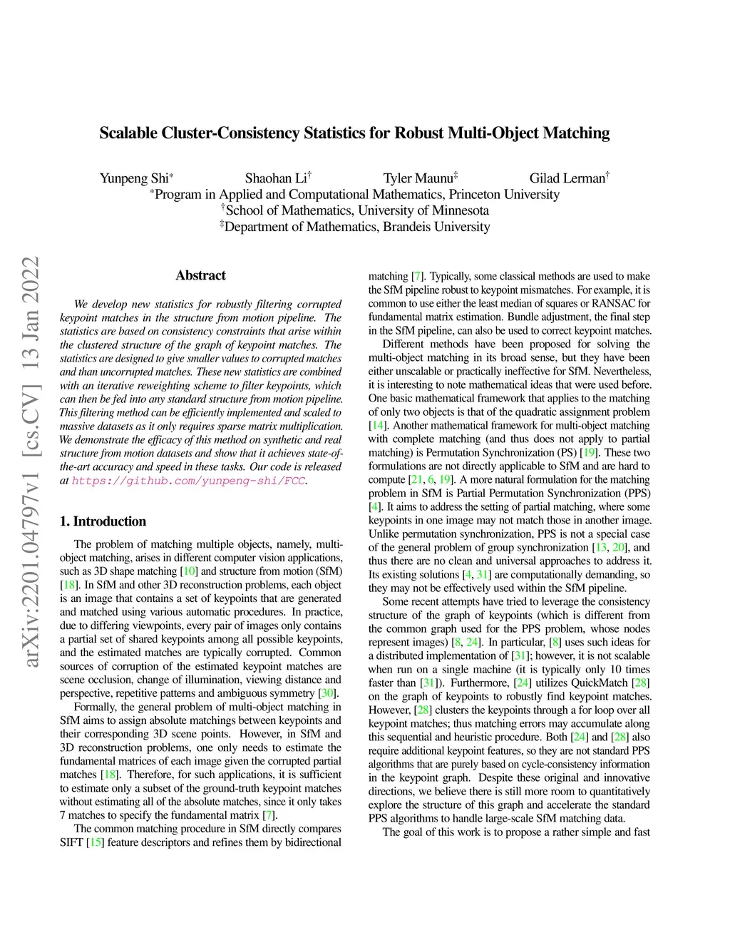 Scalable Cluster-Consistency Statistics for Robust Multi-Object Matching