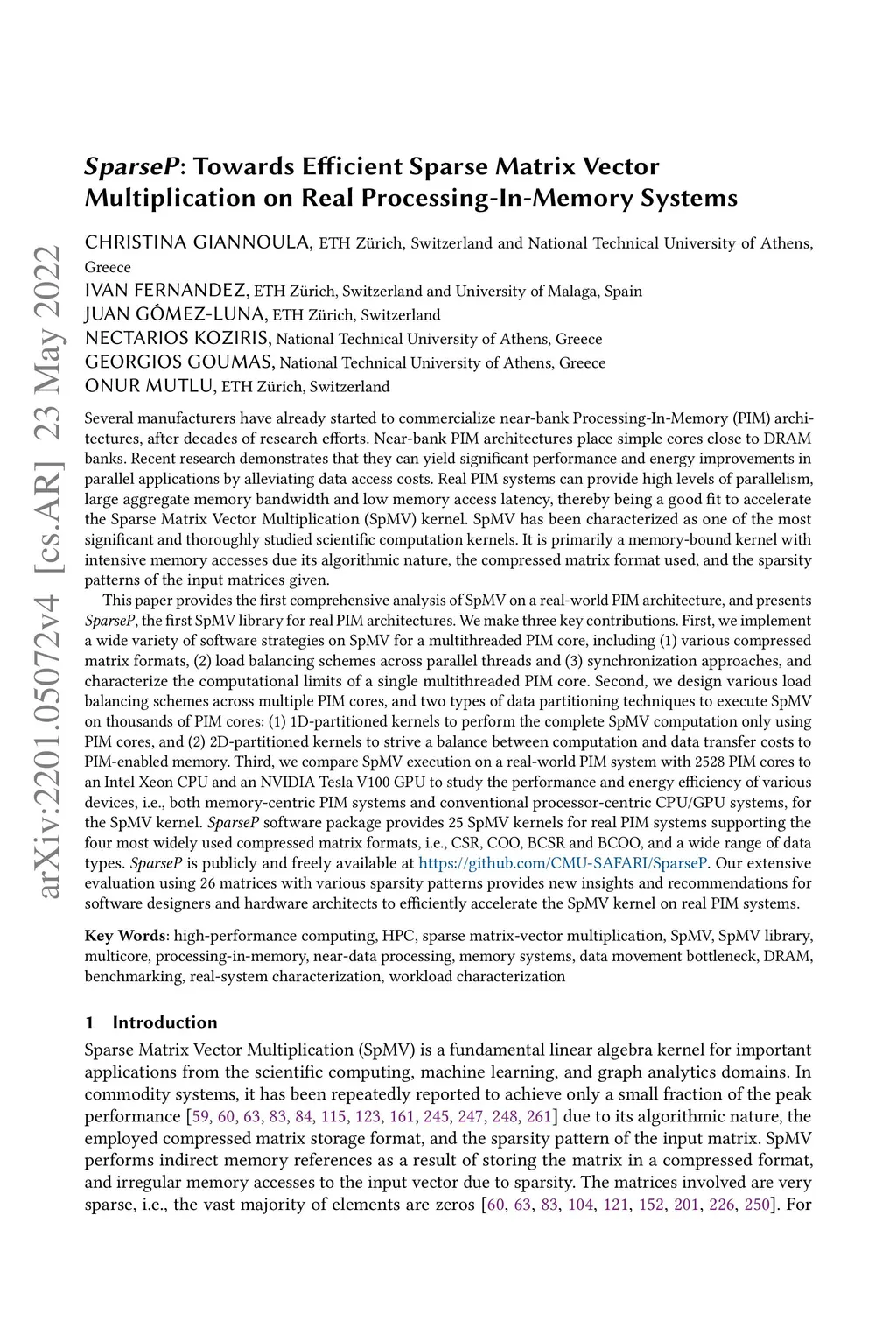SparseP: Towards Efficient Sparse Matrix Vector Multiplication on Real
