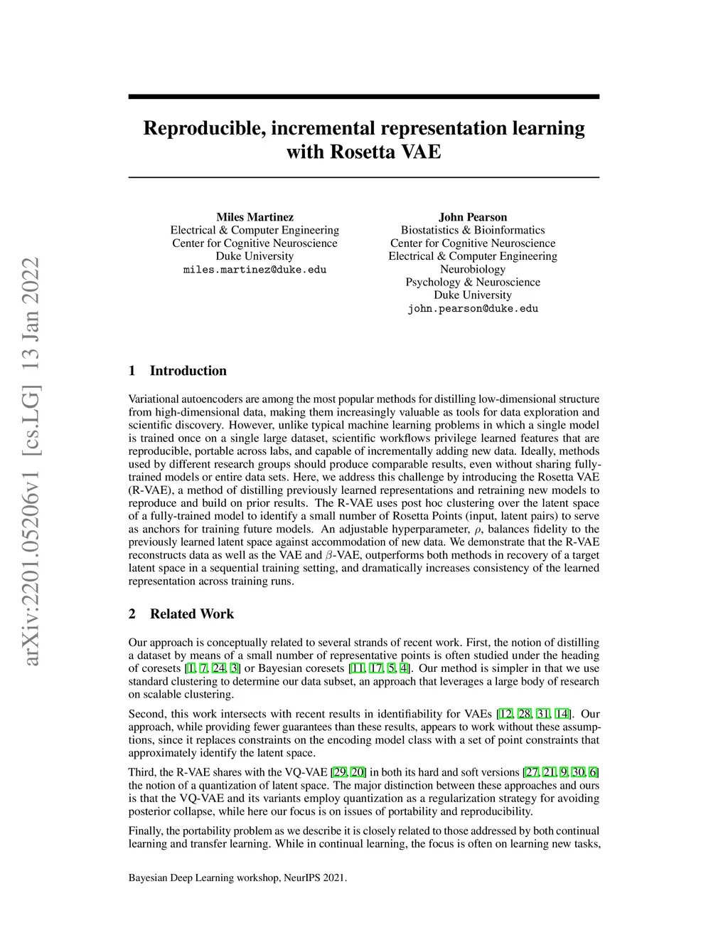 Variational autoencoders are among the most popular methods for distilling low-dimensional structure from high-dimensional data, making them increasingly valuable as tools for data exploration and scientific discovery. However, unlike typical machine learning problems in which a single model is trained once on a single large dataset, scientific workflows privilege learned features that are reproducible, portable across labs, and capable of incrementally adding new data. Ideally, methods used by different research groups should produce comparable results, even without sharing fully trained models or entire data sets. Here, we address this challenge by introducing the Rosetta VAE (R-VAE), a method of distilling previously learned representations and retraining new models to reproduce and build on prior results. The R-VAE uses post hoc clustering over the latent space of a fully-trained model to identify a small number of Rosetta Points (input, latent pairs) to serve as anchors for training future models. An adjustable hyperparameter, , balances fidelity to the previously learned latent space against accommodation of new data. We demonstrate that the R-VAE reconstructs data as well as the VAE and -VAE, outperforms both methods in recovery of a target latent space in a sequential training setting, and dramatically increases consistency of the learned representation across training runs.